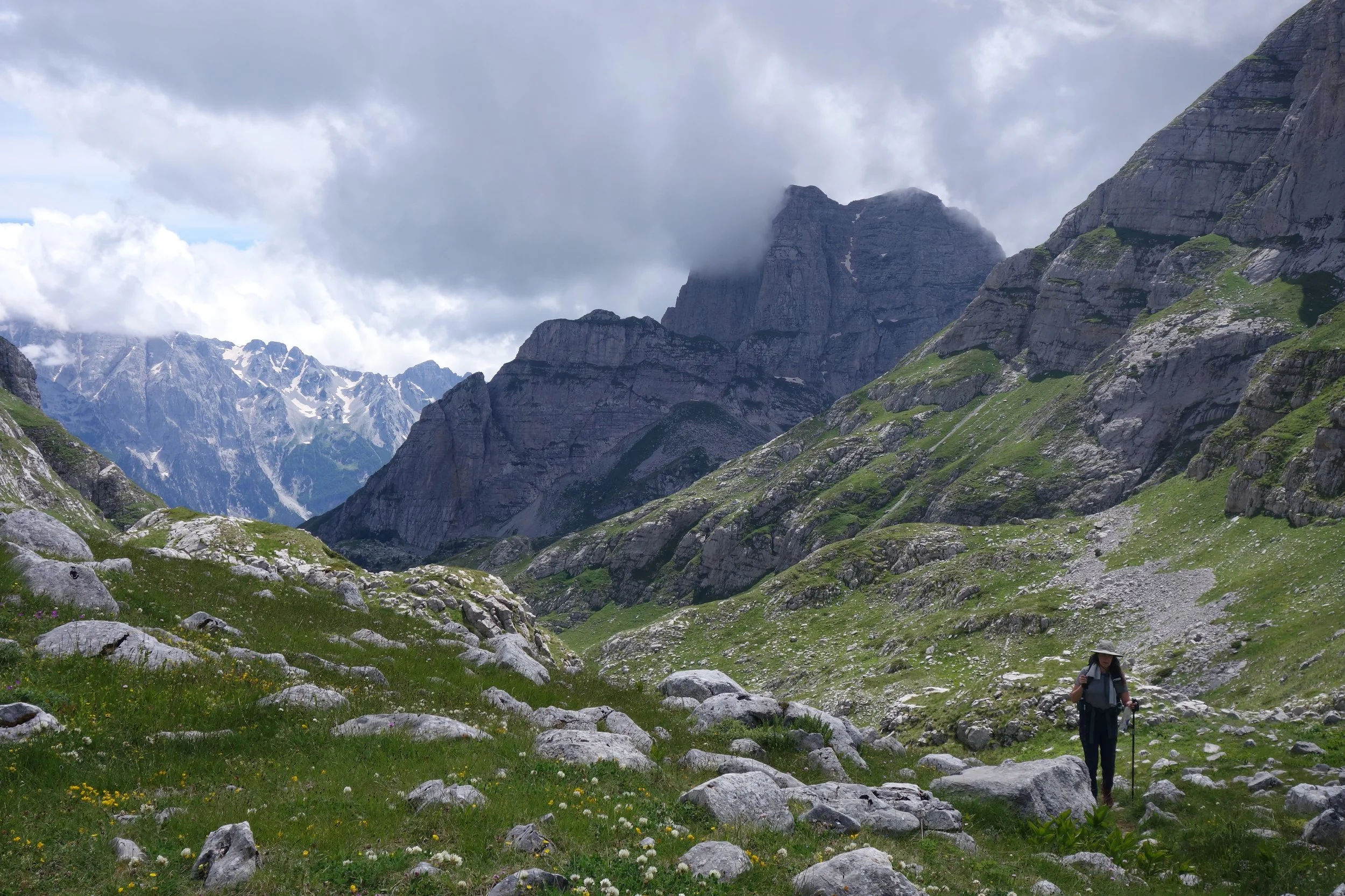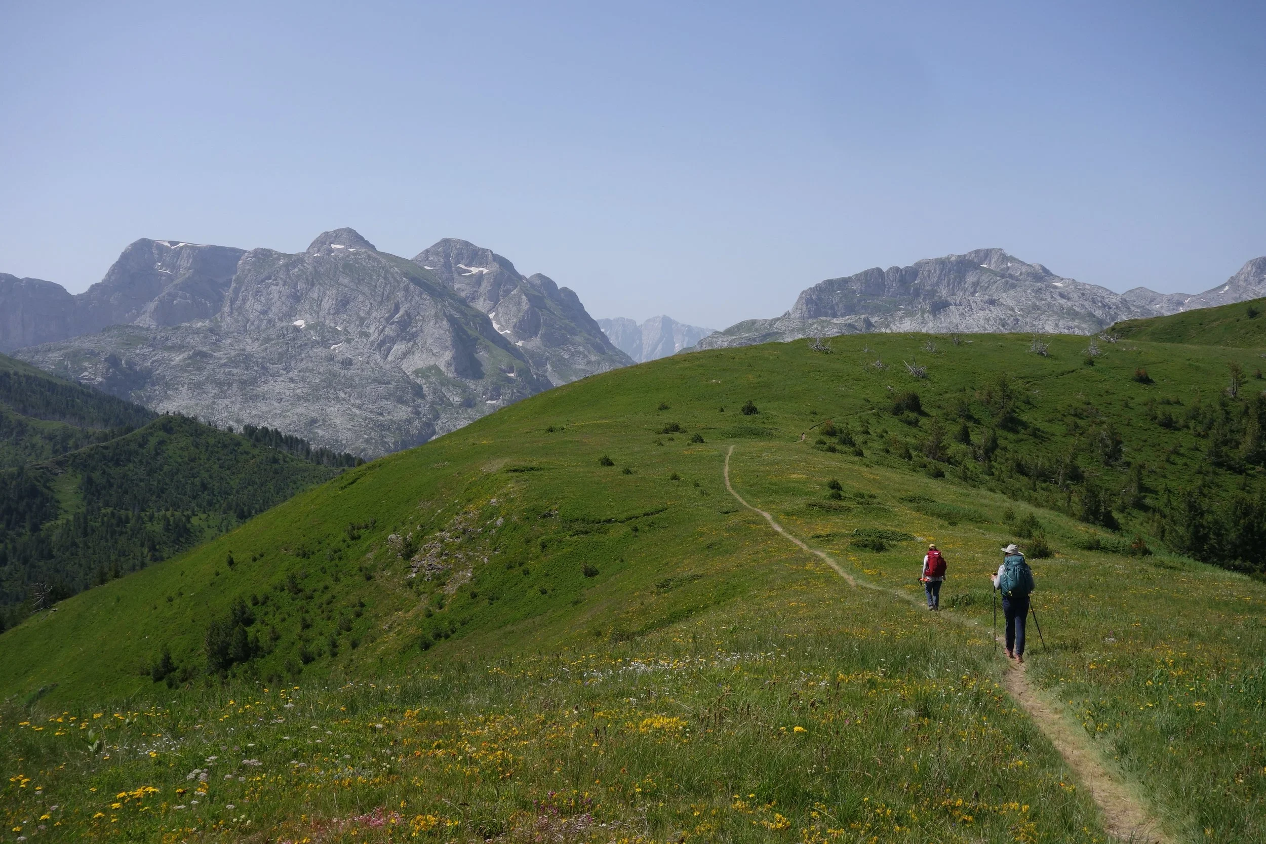 We will be crossing the Bor Peak which has been considered the most spectacular stage of the "Peaks of the Balkans" trail. We hike over the grassy ridge of the Bor towards the imposing towering stone wall that forms the border to Albania before descending into the valley of Vusanje. The view of the Grbaja massif and the Zla Kolata, the highest mountain in Montenegro, make this an incredible day.